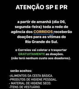 Um caminhão estará saindo de Ilhabela para levar as doações para o Rio Grande do Sul na quarta-feira de manhã!