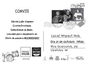 Fabíola Lugão, Cristina Prochaska, Telma Homem de Mello, Maria Sol Aranda, Vittorio Colacchio, Alexandre Gwaz, Sérgio Rousselet, João Saragossa, Marilena Cabral, Hebe Cavalcanti e Nalva Barbosa convidam vocês para o lançamento do piloto de 15 minutos da websérie.