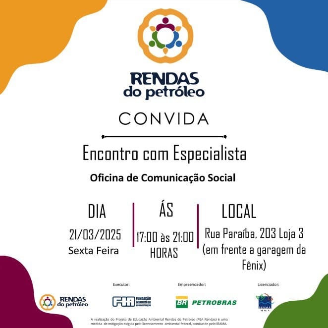 Rendas do Petróleo convida a todos para um encontro com especialista da oficina de comunicação em Ilhabela.